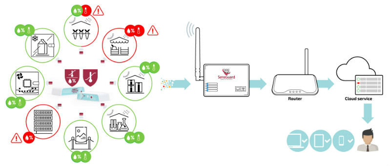 Az érzékelők leolvasásai egy speciális adatgyűjtőhöz kerülnek továbbításra, amely akár 150 érzékelőt is képes kiszolgálni 150 méteres körzetben. A hőmérsékleti adatok az interneten keresztül egy felhőalapú jelentési rendszerbe kerülnek.