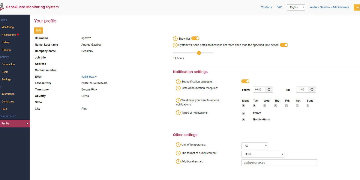 Az online jelentéskészítő szoftver 5 perces időközönként külön-külön jeleníti meg az egyes érzékelők aktuális hőmérséklet- és páratartalom-paramétereit. Ha bármelyik beállítás kívül esik a megengedett tartományon, és egy meghatározott ideig ott marad, akkor e-mailben vagy Telegram SMS-ben (opcionális) értesítést kap. Az online jelentéskészítő szoftver többfelhasználós környezetet támogat egyéni értesítési ütemezéssel. Bár a SensGuard vezeték nélküli üvegház-hőmérséklet-felügyeleti rendszer összetett műveleteket hajt végre az üvegházi környezet felügyeletével, a vezeték nélküli érzékelők telepítése néhány percet vesz igénybe.
